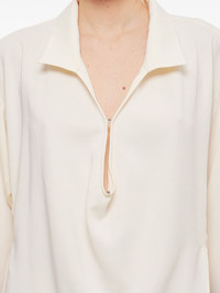 Two Way shirt Highlights - Light beige - Front button fastening - Polo collar - Side slits - Long sleeves Imported Composition Viscose 66%, Silk 34%