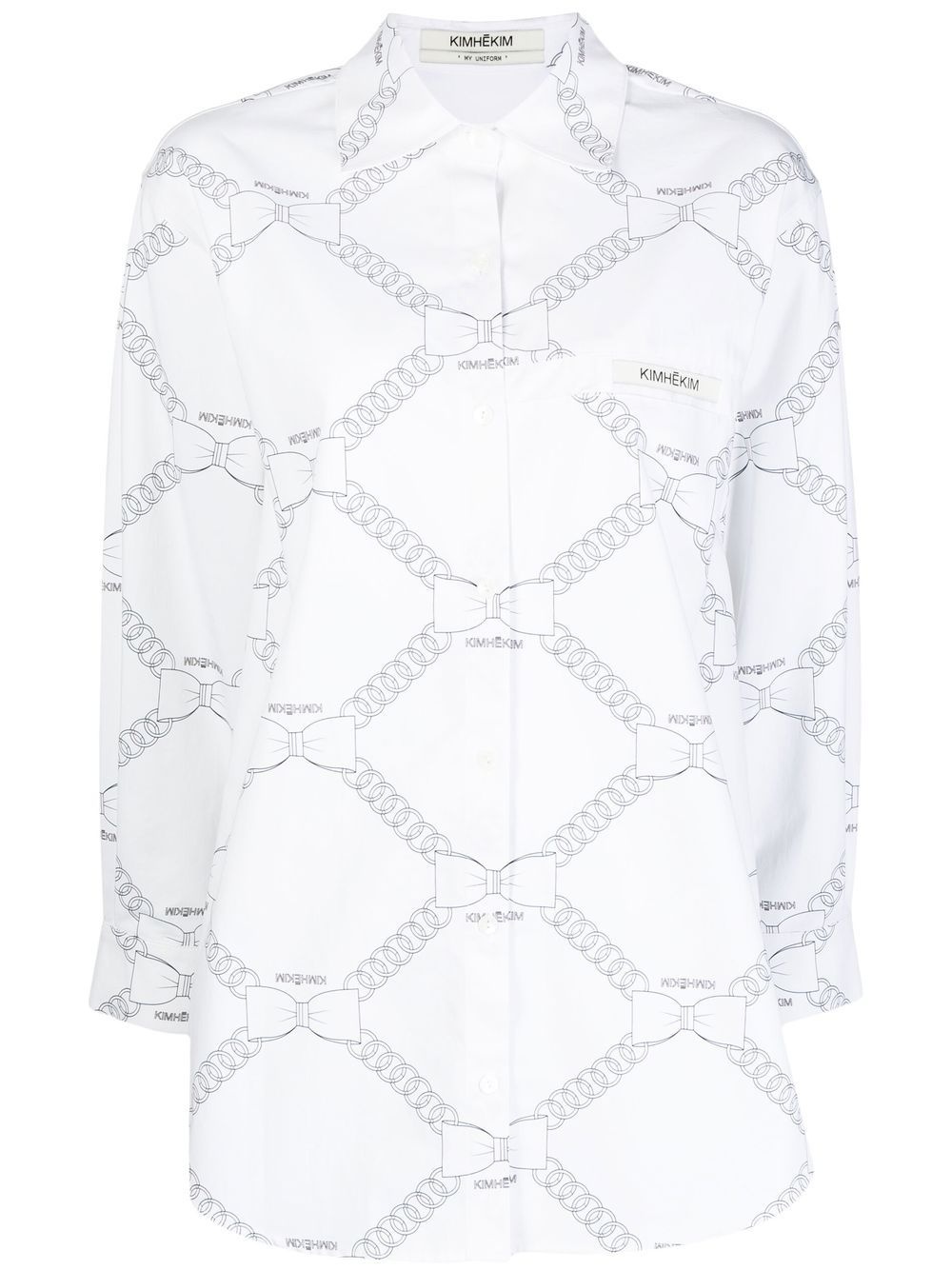 chain-link print shirt optical white cotton chain-link print classic collar long sleeves front button placket Imported Composition Body: Cotton 100% SIZE & FIT Model measurements Height 5 ft 10 in(1.77 m) Bust/Chest 31.49 in(80 cm) Hips 35.43 in(90 cm) Waist 25.19 in(64 cm) FittingInformation This piece fits true to size. We recommend you get your regular size Cut for a loose fit Made with a mid-weight non-stretch fabric
