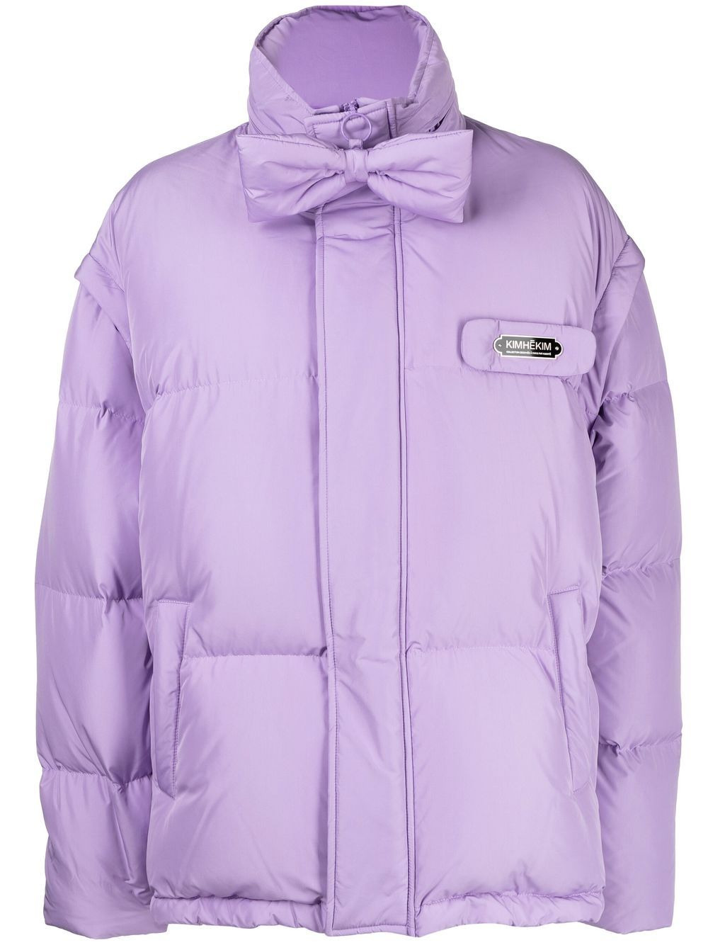 detachable-sleeve puffer jacket lavender purple down-feather filling padded design logo plaque bow detailing stand-up collar concealed hood concealed front zip fastening detachable sleeves two side welt pockets straight hem Imported Composition Body: Polyester 100% Lining: Polyester 100% Filling: Goose Down 90%, Feather 10% Washing instructions Dry Clean Only
