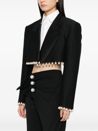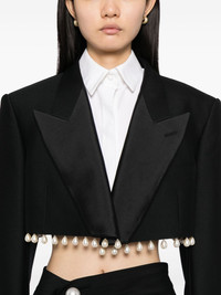 pearl-embellished cropped jacket Highlights - Black - Side welt pocket - V-neck - Buttoned-cuff sleeves Imported Composition Lining: Cupro 50%, Polyester 50% Outer: Wool 85%, Silk 15% Wool 50%, Silk 50% SIZE & FIT Model measurements Height 5 ft 10 in(1.78 m) Bust/Chest 30.31 in(77 cm) Hips 37 in(94 cm) Waist 24.8 in(63 cm) Measurement LENGTH 14.56 in(37 cm) BUST 37 in(94 cm) Shoulder Width 17.71 in(45 cm) FittingInformation Designed for a boxy fit, intended for a loose fit throughout The internal shoulder pads offer a structured shape Made from a midweight non-stretch fabric Washing instructions Dry Clean Only