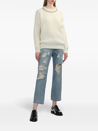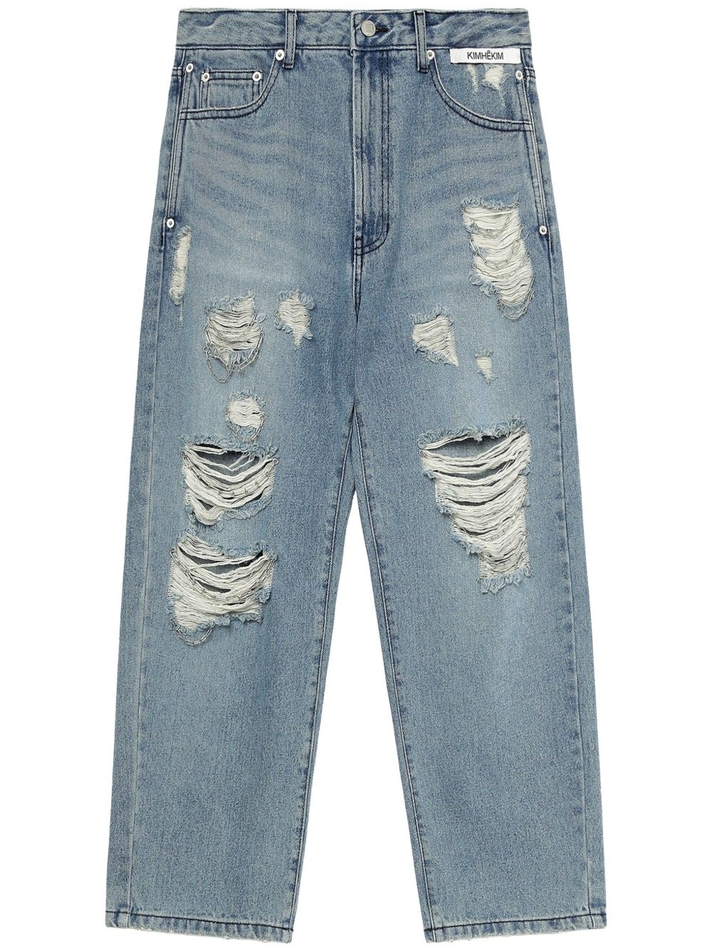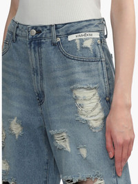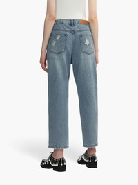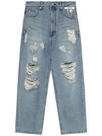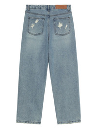ripped straight jeans Highlights - Blue - Cotton - Denim - Ripped detailing - Whiskering effect at the thighs - Distressed finish - Front button and zip fastening - Mid-rise - Belt loops - Logo patch to the side - Classic five pockets - Logo patch to the rear - Straight leg - Cropped Imported Composition Cotton 100%