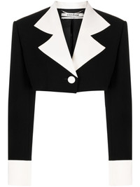 two-tone cropped jacket Highlights - Black/white - Two-tone design - Cropped - Wide notch lapels - Front button fastening - Long sleeves - Contrasting cuffs - Straight hem Imported Composition Wool 96%, Polyamide 4% SIZE & FIT Model measurements Height 5 ft 9 in(1.75 m) Bust/Chest 31.88 in(81 cm) Hips 35.03 in(89 cm) Waist 23.22 in(59 cm) FittingInformation Designed for a slim fit that sits just away from the body offering a close yet comfortable fit The internal shoulder pads offer a structured shape Made from a midweight non-stretch fabric This piece fits true to size – take your usual size Washing instructions Dry Clean Only
