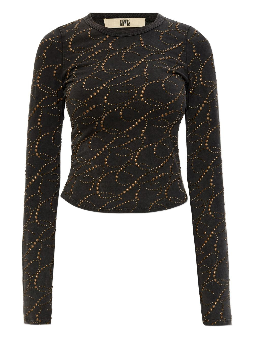 Cally studded top Highlights - Black - Stud embellishment - Round neck - Long sleeves Imported Composition Cotton 92%, Spandex/Elastane 8% Washing instructions Read Manufacturer Guidelines