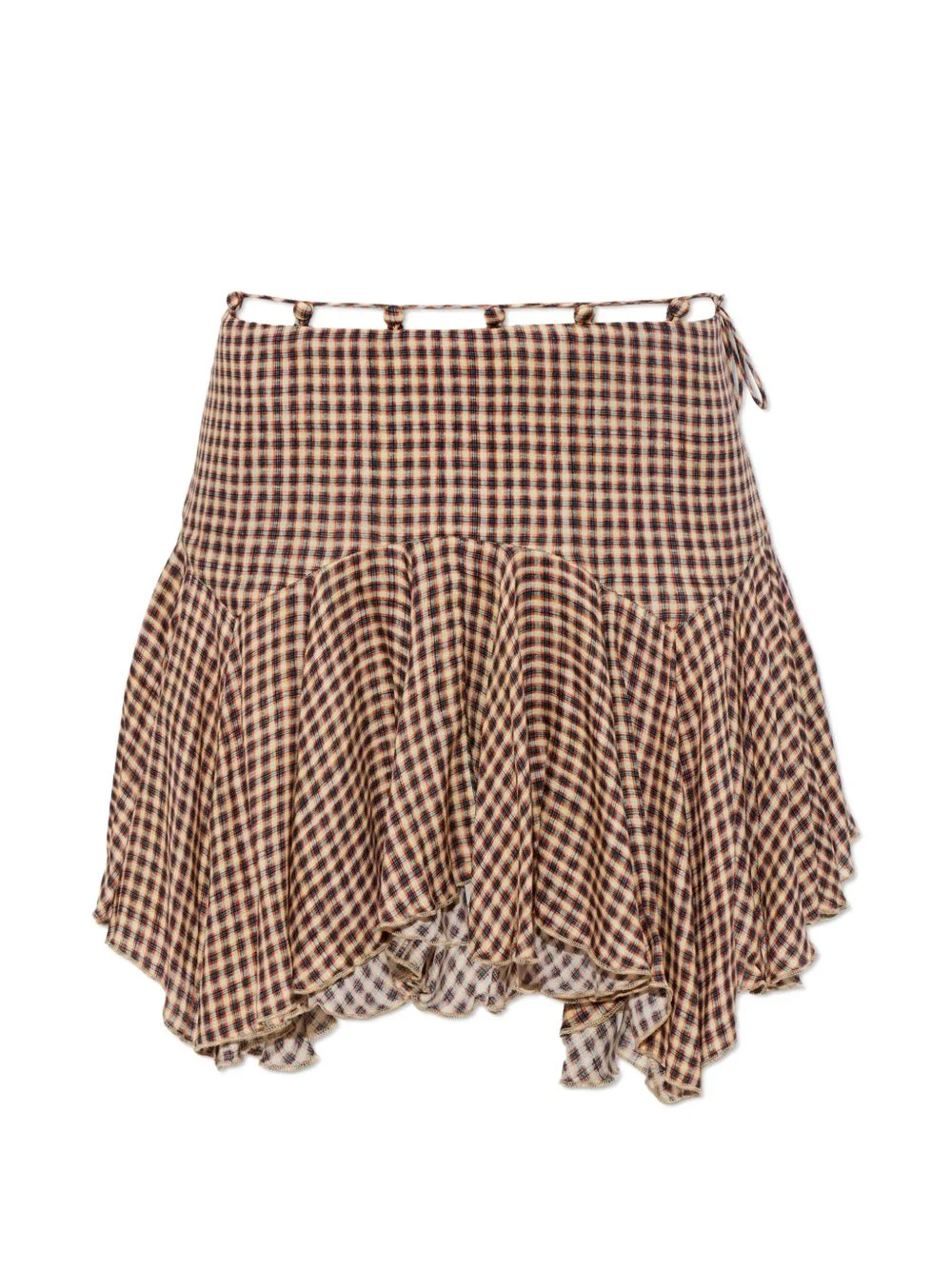 check ruffled skirt Highlights - Neutrals brown - Check pattern - Ruffled hem - Tie detail - Low-rise - Asymmetric design Made in United Kingdom Composition Outer: Viscose 100%