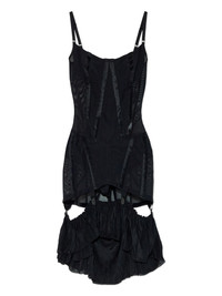 Uma ruffled suspender mini dress Highlights - Black - Suspender straps - Pleated ruffle trim - Mesh panels - Zip fastening - Garter straps Made in United Kingdom Composition Nylon 83%, Polyurethane 17% Washing instructions Read Manufacturer Guidelines