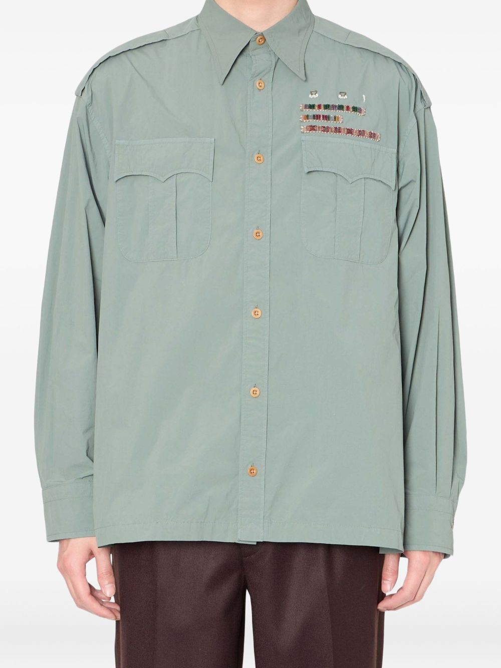 beaded-embellishment shirt Highlights - Green - Long sleeves - Button fastening - Beaded embellishment - Patch pocket Imported Composition Nylon 100% Washing instructions Read Manufacturer Guidelines