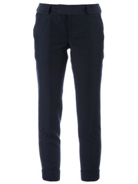 contrast cropped trouser Dark blue cotton blend trouser from Kolor featuring a concealed front fastening, contrast piping to the side of the legs, belt loops to the waist, two inset pockets to the front and a cropped leg with turn-up cuffs. Imported Composition Viscose 100%, Cotton 74%, Silk 18%, Nylon 8% Washing instructions Dry Clean Only