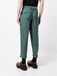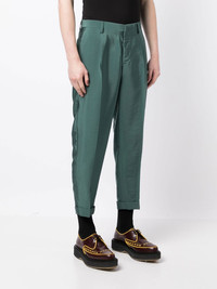 cropped tapered-leg suit trousers dark green mid-rise belt loops concealed front fastening two rear flap pockets tapered leg cropped Imported Composition Polyester 100% SIZE & FIT Model measurements Height 6 ft 2 in(1.87 m) Bust/Chest 36.22 in(92 cm) Hips 37.79 in(96 cm) Waist 28.34 in(72 cm) FittingInformation This piece fits true to size. We recommend you get your regular size Regular fit Made with a mid-weight non-stretch fabric Washing instructions Dry Clean Only