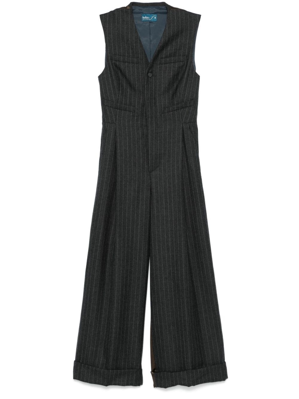 pinstripe jumpsuit Highlights - Charcoal grey - Wool - Satin panels - Pinstripe pattern - Front button placket - V-neck - Sleeveless - Chest welt pocket - Two diagonal pockets to the sides - Pleat detailing - Pressed crease - Turn-up hem Imported Composition Outer: Wool 100%, Triacetate 89%, Polyester 11% Lining: Polyester 100% SIZE & FIT Model measurements Height 5 ft 9 in(1.75 m) Bust/Chest 31.88 in(81 cm) Hips 34.64 in(88 cm) Waist 24.01 in(61 cm) FittingInformation Designed for a relaxed fit, this piece allows for comfort and movement when worn Made from a midweight non-stretch fabric