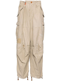 stitch-detail cargo trousers Highlights - Sand beige - Cotton - Concealed fly and button fastening - Spray-paint effect - Decorative stitching - Belt loops - Two side cargo pockets - Rear flap pocket - Wide leg Imported Composition Cotton 100%