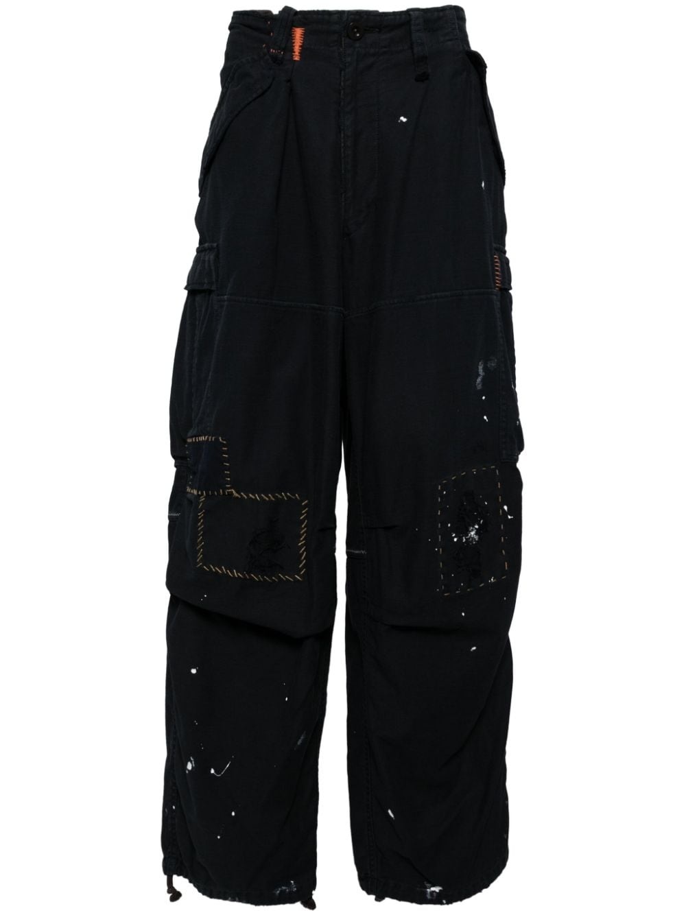 stitch-detailed cargo trousers Highlights - Navy blue - Cotton - Concealed fly and button fastening - Spray-paint effect - Decorative stitching - Belt loops - Two side cargo pockets - Rear flap pocket - Wide leg - Straight leg Imported Composition Cotton 100%