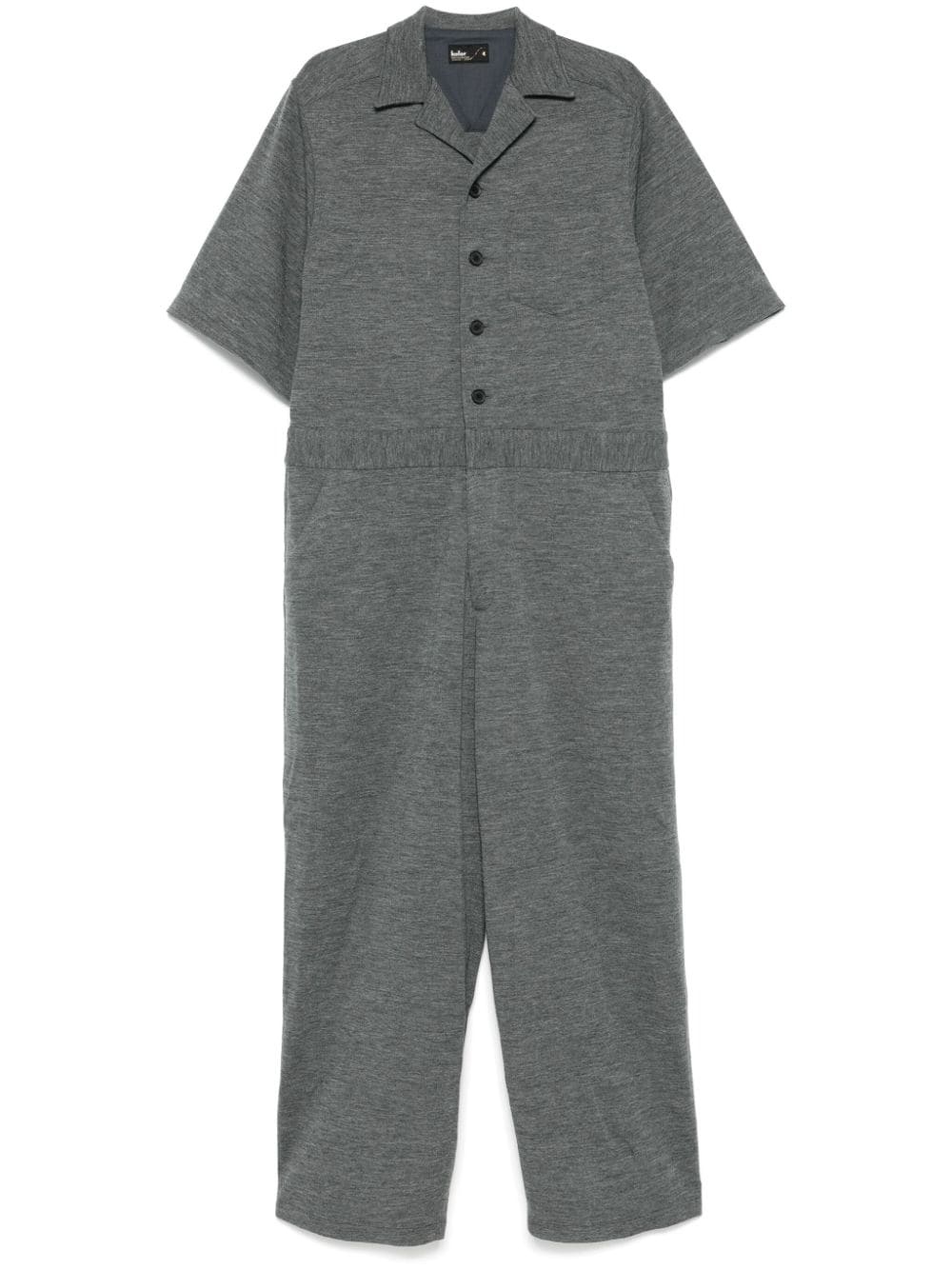 wide-leg jumpsuit Highlights - Medium grey - Wool - Knitted construction - Melange effect - Front button fastening - Notched collar - Short sleeves - Chest patch pocket - Two side slash pockets - Rear flap pocket - Rear jetted pocket - Wide leg Imported Composition Outer: Wool 100% Lining: Polyester 100%