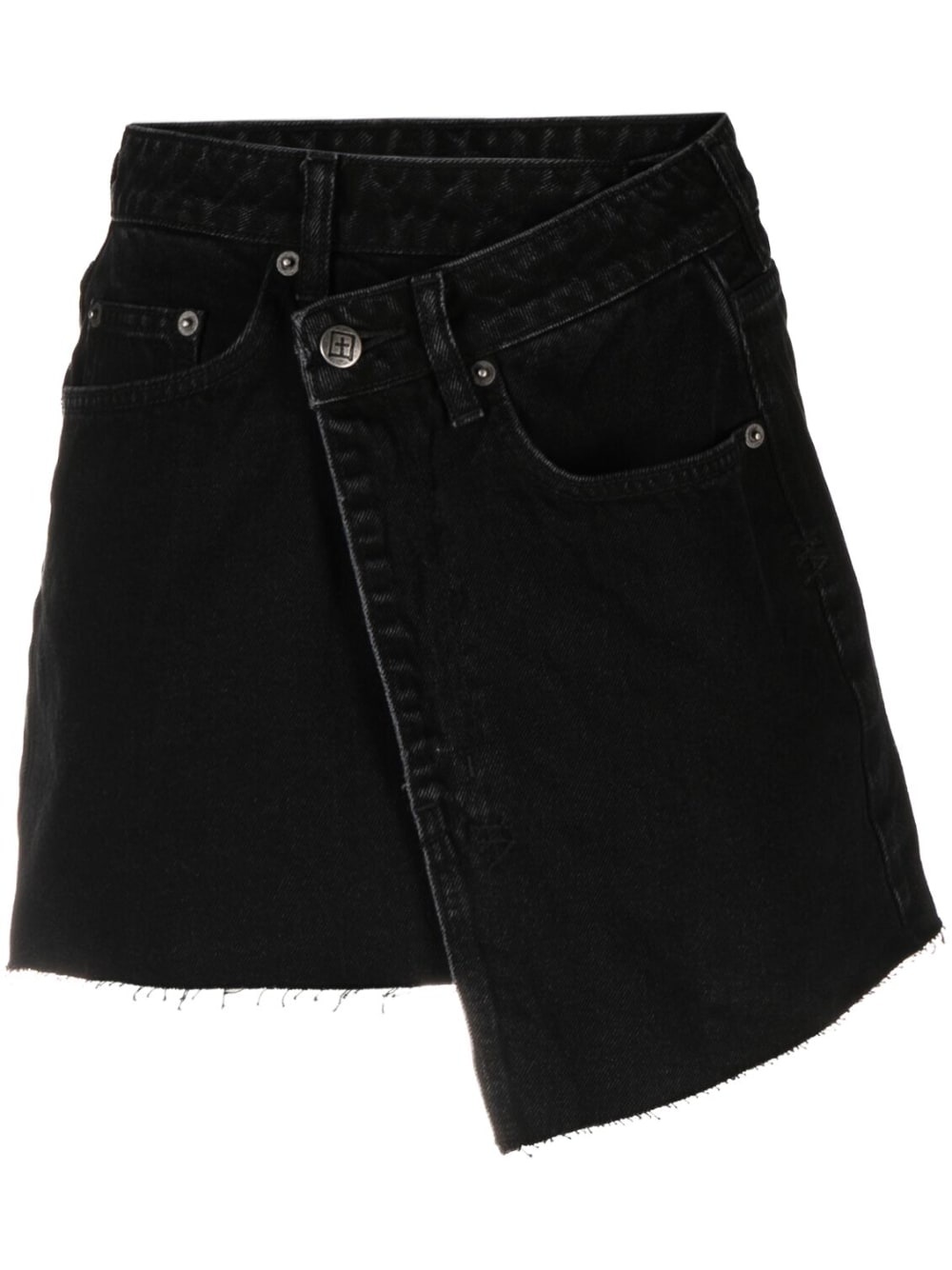 asymmetric denim mini skirt KSUBI's contemporary take on classic denim silhouettes permeates the brand's edit, as shown by this black mini skirt. Sitting high at the waist, this wrap-style design buttons at the front with a button-style fly whilst boasting an asymmetric hem. Highlights - Black - Cotton - High-waisted - Wrap design - Front button and zip fastening - Belt loops - Classic five pockets - Asymmetric hem Imported Composition Cotton 100% SIZE & FIT Model measurements Height 5 ft 10 in(1.77 m) Bust/Chest 31.49 in(80 cm) Hips 35.03 in(89 cm) Waist 23.22 in(59 cm) FittingInformation Designed with an asymmetric hem, this skirt is intended to be worn high on the waist Made from a midweight non-stretch fabric This piece fits true to size – take your usual size Washing instructions Machine Wash