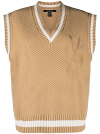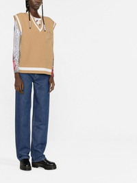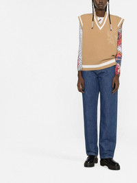 contrasting-trim detail vest beige/white merino-blend contrasting trim ribbed detailing V-neck sleeveless straight hem Imported Composition Merino 80%, Nylon 20% SIZE & FIT Model measurements Height 5 ft 10 in(1.79 m) Bust/Chest 31.1 in(79 cm) Hips 35.03 in(89 cm) Waist 24.01 in(61 cm) FittingInformation This piece fits true to size. We recommend you get your regular size Cut for a loose fit Made with a mid-weight fabric Washing instructions Hand Wash
