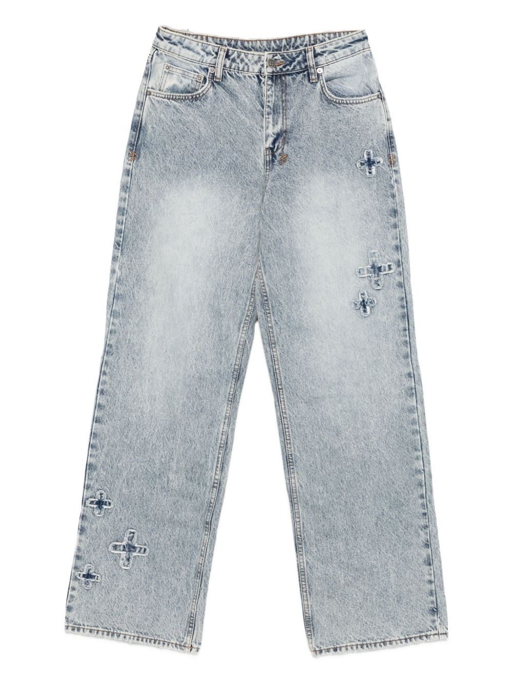 cross-embroidered cotton jeans Highlights - Blue - Embroidered crosses - Cotton material - Straight leg - Five-pocket styling Imported Composition Cotton 100% Washing instructions Machine Wash