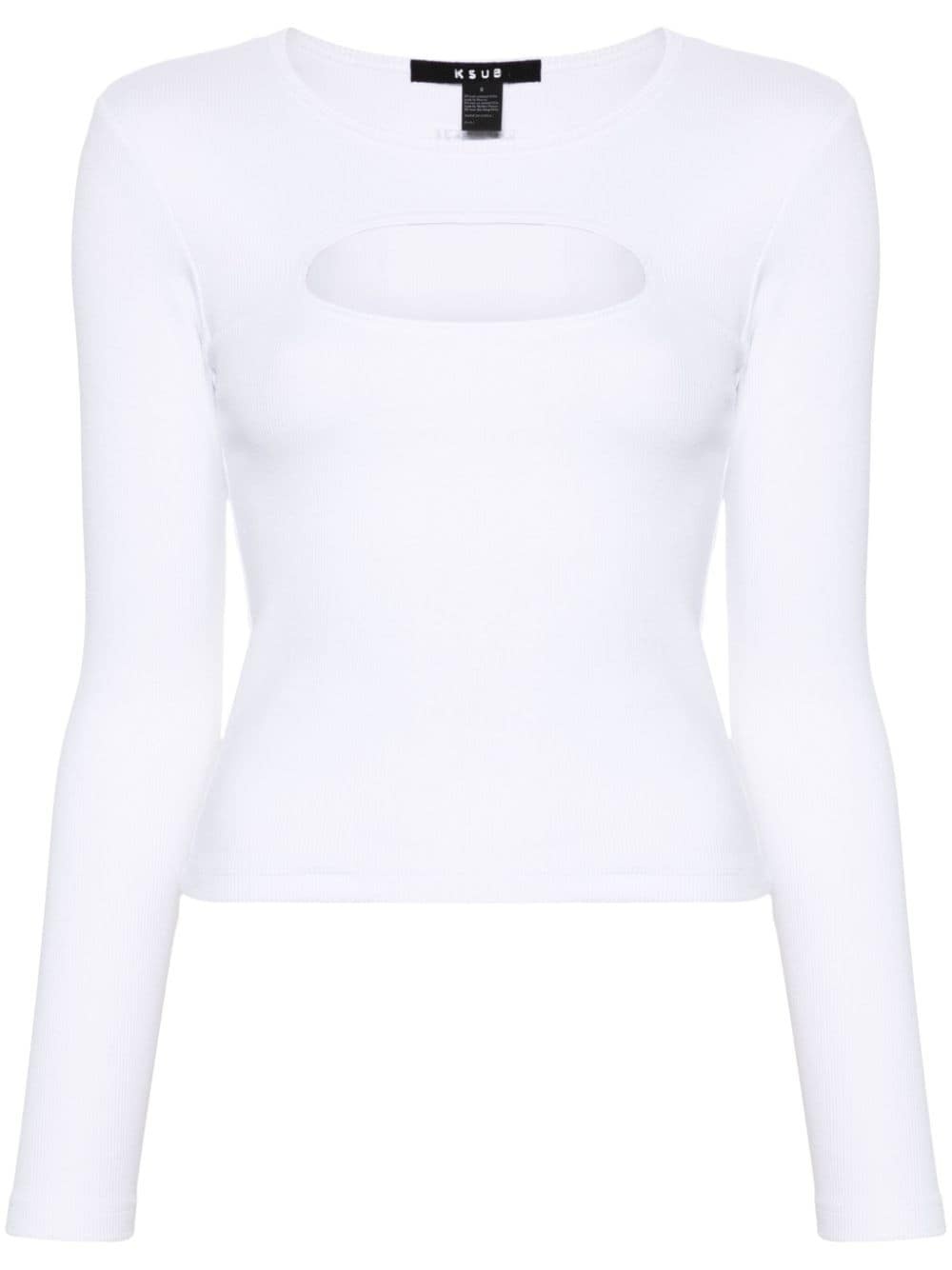 cut-out ribbed top Highlights - White - Stretch-cotton - Fine ribbed - Scoop neck - Cut-out detailing at the chest - Long sleeves - Straight hem - Embroidered tonal logo to the rear Imported Composition Cotton 98%, Spandex/Elastane 2%