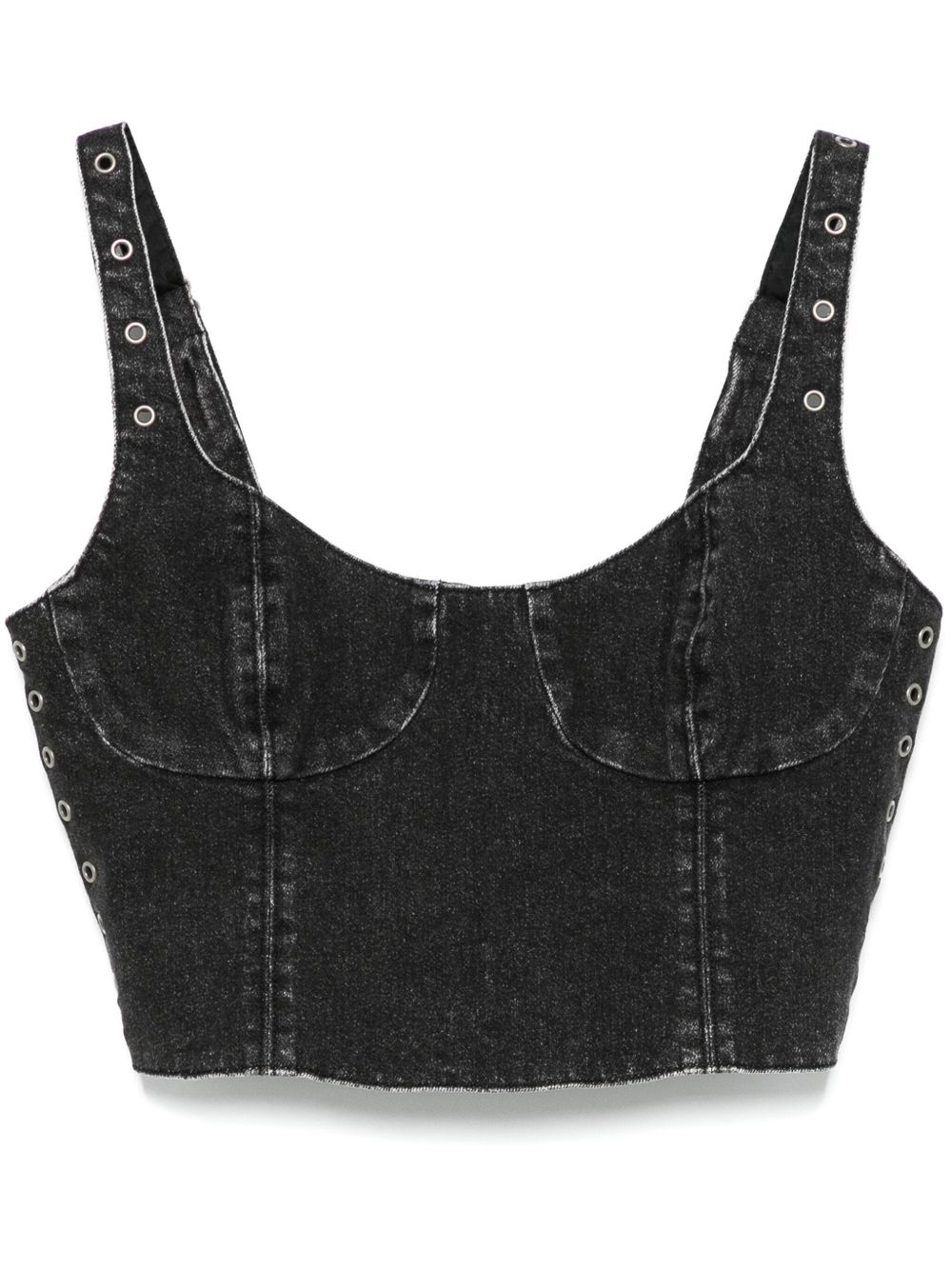 Dauphine crop top Highlights - Black - Rear zip fastening - Adjustable shoulder straps - Embroidered logo - Eyelet detailing Imported Composition Cotton 99%, Elastane 1% SIZE & FIT Model measurements Height 5 ft 10 in(1.78 m) Bust/Chest 33.85 in(86 cm) Hips 36.61 in(93 cm) Waist 26.77 in(68 cm) FittingInformation Designed for a close fit throughout The adjustable shoulder straps allow for a preferred fit when worn Made from a midweight stretch fabric, this piece offers elasticity and flexibility when worn