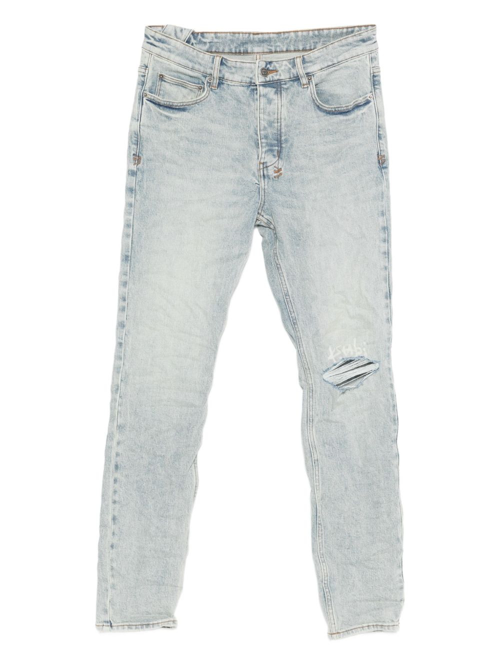 distressed-detail jeans Highlights - Blue - Distressed knee detail - Five-pocket styling Imported Composition Cotton 99%, Elastane 1% SIZE & FIT Model measurements Height 6 ft 0 in(1.84 m) Bust/Chest 37.79 in(96 cm) Hips 37 in(94 cm) Waist 31.49 in(80 cm) Washing instructions Machine Wash