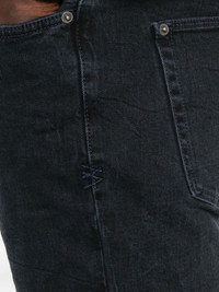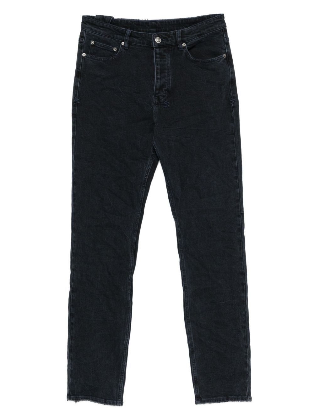 five-pockets cotton jeans Highlights - Dark blue - Button fly - Five-pocket - Raw hem - Dark wash Imported Composition Cotton 99%, Elastane 1% SIZE & FIT Model measurements Height 6 ft 0 in(1.84 m) Bust/Chest 37.79 in(96 cm) Hips 37 in(94 cm) Waist 31.49 in(80 cm) Washing instructions Machine Wash