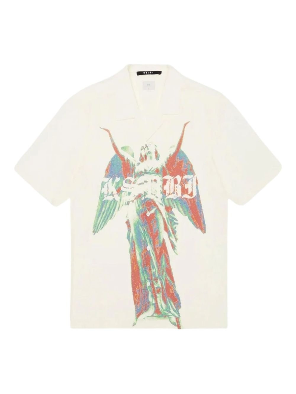 graphic-print shirt Highlights - White - Front button fastening - Text print - Notched lapels - Short sleeves Imported Composition TENCEL™ 100%