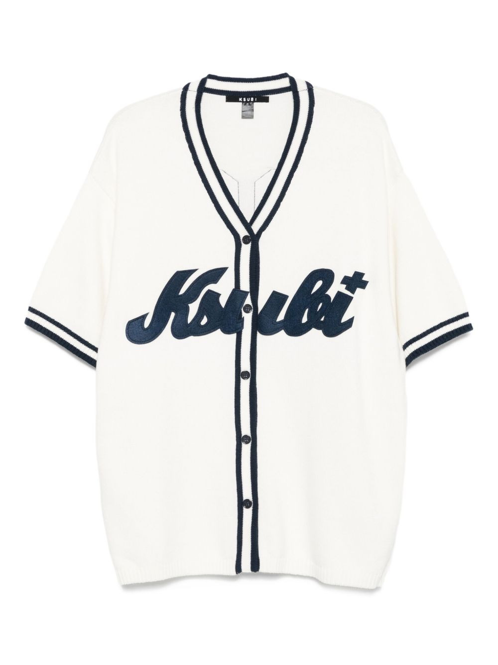 knit baseball cardigan Highlights - White - Short sleeves - Button fastening - Blue embroidered lettering - Ribbed trims Imported Composition Cotton 100% Washing instructions Hand Wash
