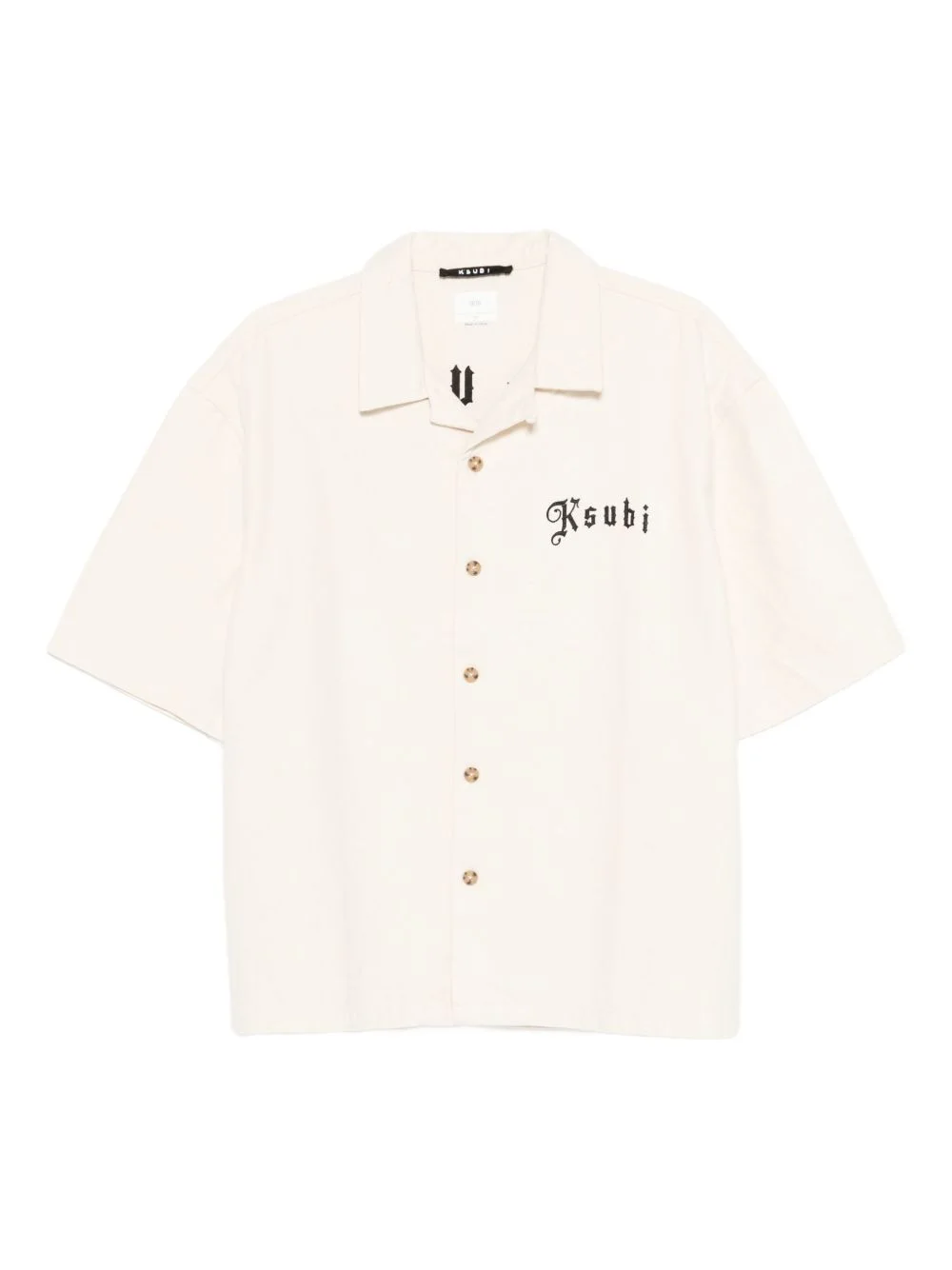 logo-embroidered shirt Highlights - Off white - Button fastening - Logo detail - Short sleeves - Chest detail Imported Composition Cotton 100% SIZE & FIT Model measurements Height 6 ft 1 in(1.85 m) Bust/Chest 38.58 in(98 cm) Hips 37 in(94 cm) Waist 30.31 in(77 cm) Washing instructions Machine Wash