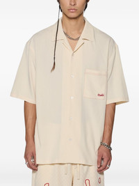 logo-embroidered shirt Highlights - Sand beige - Front button fastening - Chest patch pocket - Notched lapels - Short sleeves Imported Composition Viscose 50%, Nylon 48%, Elastane 2%