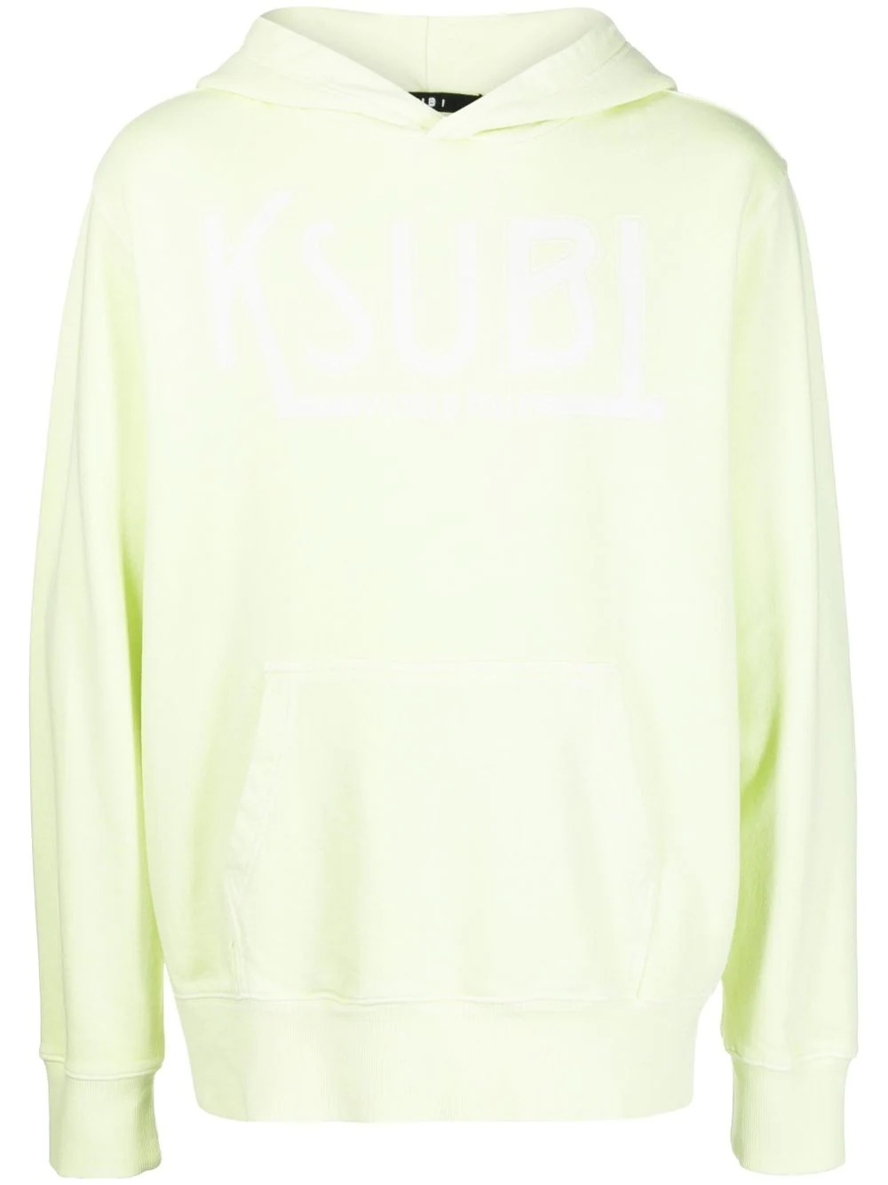 logo-print cotton hoodie logo-print cotton hoodie from KSUBI featuring light green, cotton, jersey fleece, logo print to the front, classic hood, long sleeves, fitted-cuff sleeves, front pouch pocket and straight hem. Imported Composition Body: Cotton 100% SIZE & FIT Model measurements Height 6 ft 2 in(1.88 m) Bust/Chest 36.61 in(93 cm) Hips 38.58 in(98 cm) Waist 31.1 in(79 cm) FittingInformation This piece fits true to size. We recommend you get your regular size Cut for an oversized fit Made with a mid-weight fabric Washing instructions Machine Wash