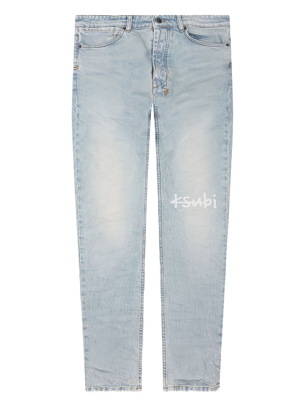 logo-print jeans Highlights - Blue - Faded wash - Embroidered cross detail - Logo print - Button fastening - Belt loops Made in United States Composition Cotton 99%, Elastane 1% Washing instructions Read Manufacturer Guidelines