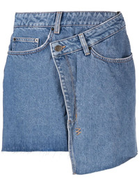logo-tag asymmetric denim miniskirt Highlights - Blue - Cotton - Denim - Logo tag to the rear - Embroidered logo to the rear - Asymmetric design - Contrast stitching - Logo-debossed buttons - Mid-rise - Off-centre front button fastening - Concealed side press-stud fastening - Belt loops - Classic five pockets - Raw-cut hem - Thigh-length Imported Composition Cotton 100% SIZE & FIT Model measurements Height 5 ft 10 in(1.77 m) Bust/Chest 32.67 in(83 cm) Hips 35.43 in(90 cm) Waist 23.62 in(60 cm) FittingInformation This mini-length skirt is intended to be worn just below the waist Sturdy and hard-wearing, this denim piece offers no stretch This piece fits true to size – take your usual size Washing instructions Machine Wash