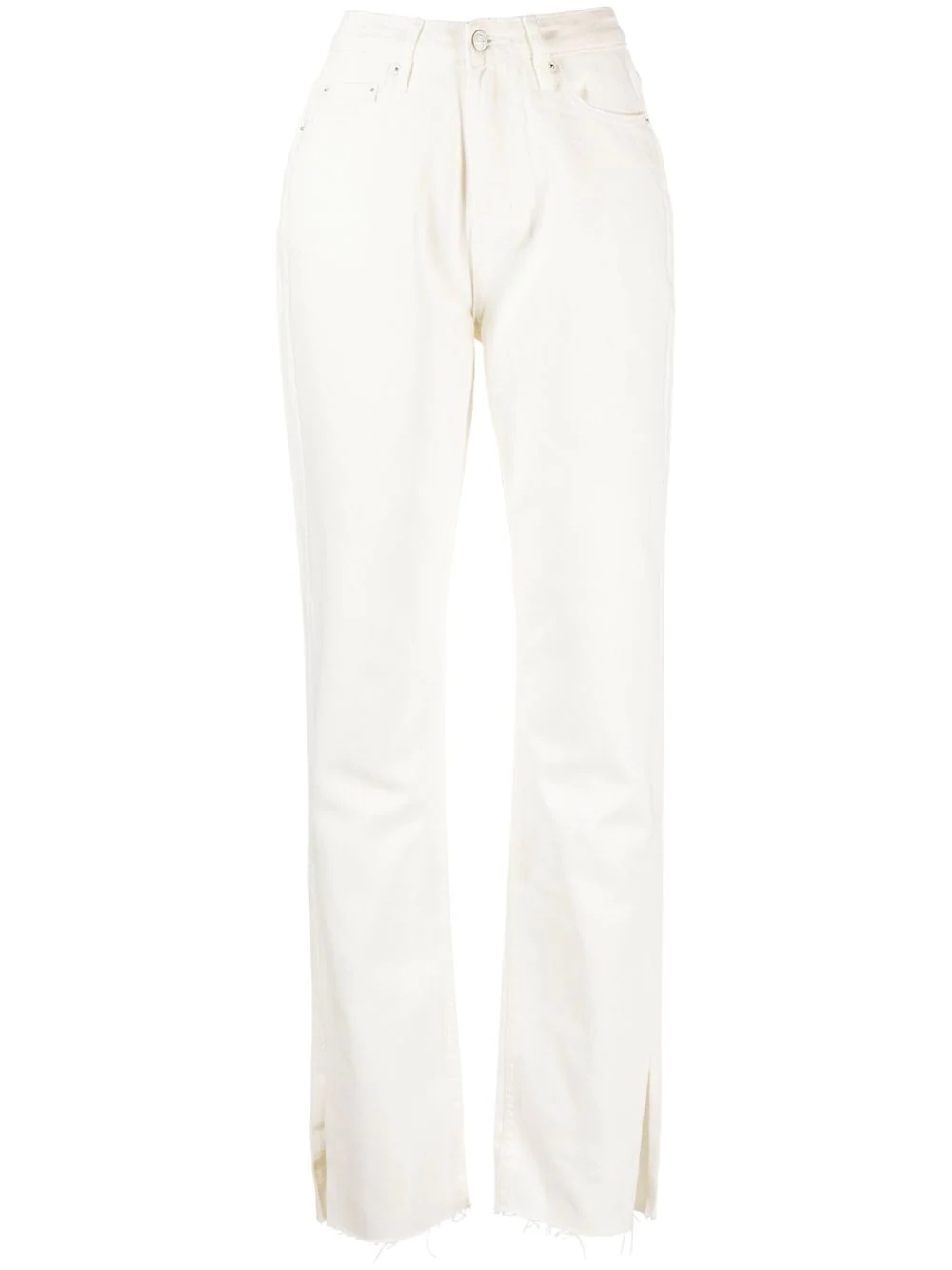 Melrose slim-cut jeans off-white cotton front button fastening two diagonal pockets to the sides two rear patch pockets slim cut Imported Composition Cotton 100% SIZE & FIT Model measurements Height 5 ft 10 in(1.77 m) Bust/Chest 32.67 in(83 cm) Hips 35.43 in(90 cm) Waist 23.62 in(60 cm) FittingInformation This piece fits true to size. We recommend you get your regular size Designed to be fitted at the waist and hips, loose over the leg Made with a mid-weight non-stretch fabric Washing instructions Machine Wash
