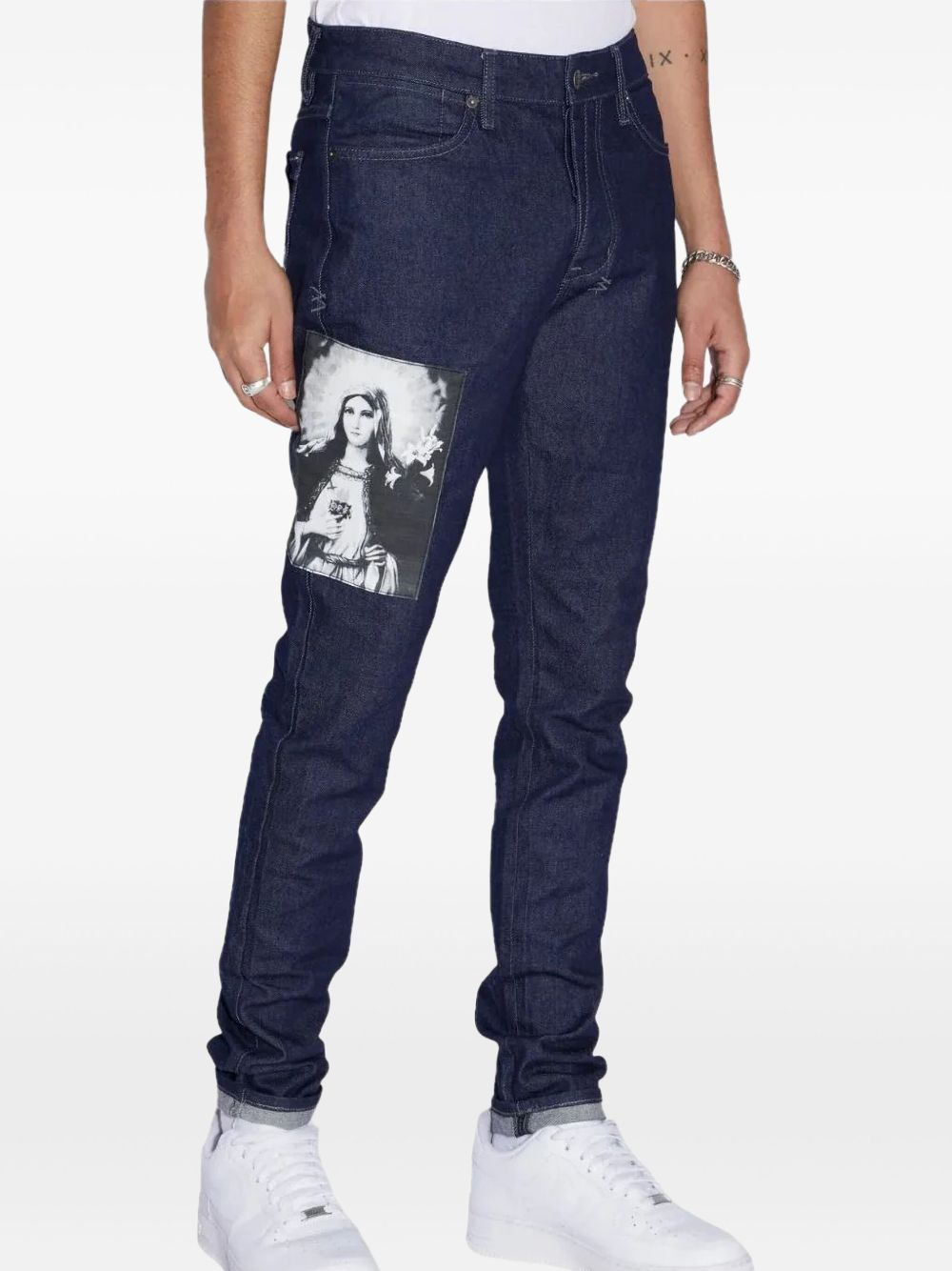 Saint Jean patchwork straight-leg jeans Highlights - Blue - Patchwork design - Graphic print - Front button and zip fastening - Classic five pockets - Belt loops Imported Composition Cotton 99%, Elastane 1% Washing instructions Read Manufacturer Guidelines