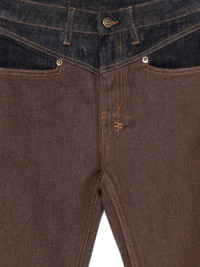 Soho spliced jeans Highlights - Brown - Contrast panel - Topstitching - Five pockets - Belt loops - Logo detail Imported Composition Cotton 99%, Fabric 1% Washing instructions Read Manufacturer Guidelines