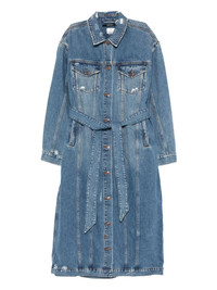 Trucker Relik distressed coat Highlights - Blue - Denim - Belt - Button fastening - Chest pockets - Distressed effect - Point collar Imported Composition Cotton 100% Washing instructions Hand Wash