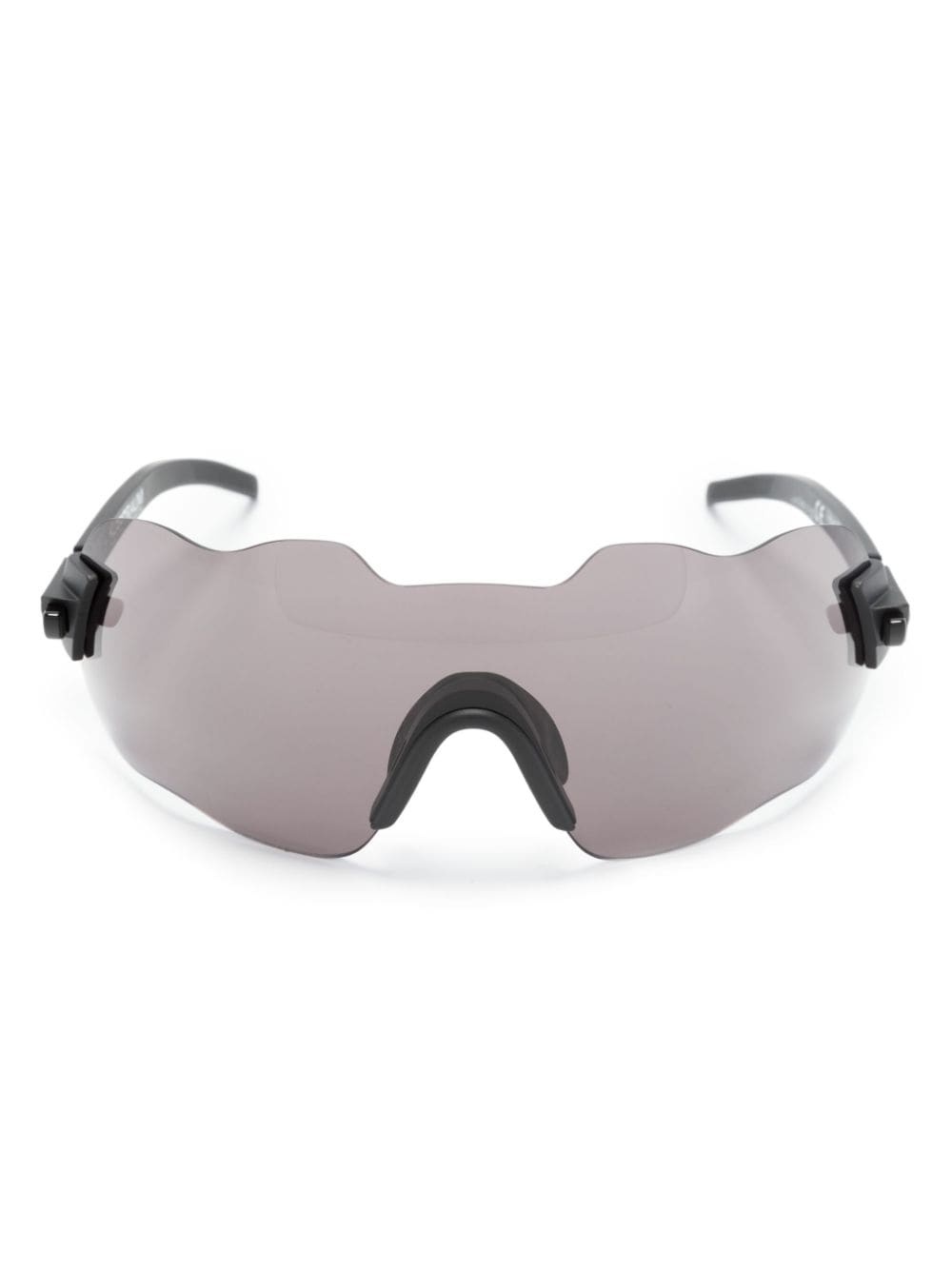 Mask E50 rimless sunglasses Kuboraum's innovative approach to design is evident on these Mask E50 sunglasses with their rimless frame and wavy edge. Highlights - Dark grey - Acetate - Mask shape - Rimless tinted lenses - Uv protection - Nose pads - Logo print at the arm - Straight arms - Curved tips - These glasses come with a protective case. Made in Italy Composition Acetate 100% SIZE & FIT Measurement Arm Length 4.72 in(12 cm) Bridge Width 0.07 in(0.2 cm) Lens Diameter 3.89 in(9.9 cm) Total Width 5.7 in(14.5 cm)