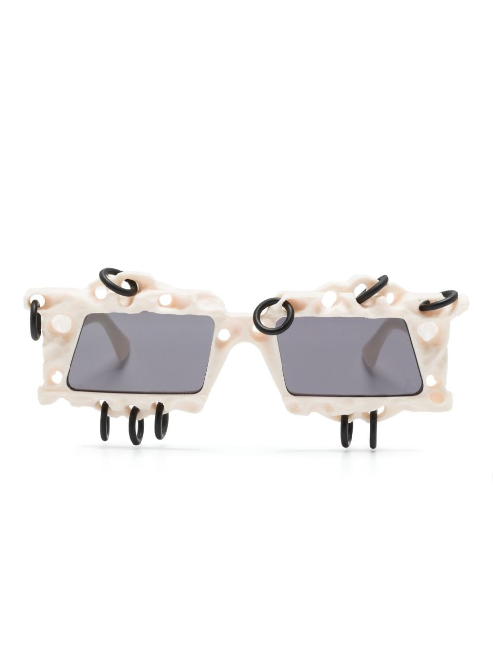 X20 Hypercore geometric-frame sunglasses Highlights - Cream white - Acetate - Handcrafted effect - Perforated detailing - Multiple-ring embellishment - Geometric frame - Grey tinted lenses - Sculpted arms with curved tips - These glasses come with a protective case. Made in Italy Composition Acetate 100% SIZE & FIT Measurement Arm Length 5.7 in(14.5 cm) Bridge Width 0.78 in(2 cm) Lens Diameter 2.2 in(5.6 cm) Total Width 6.1 in(15.5 cm)