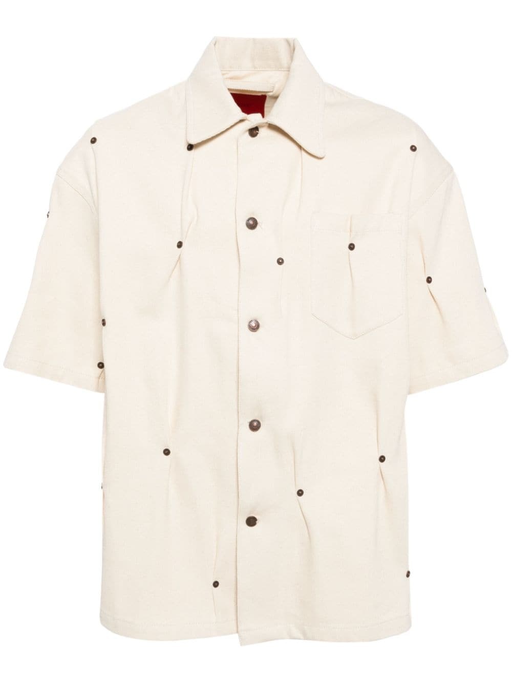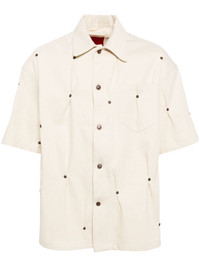 Multi-Rivet denim short sleeves shirt Highlights - White - Cotton - Denim - Multi-rivet - Short sleeves - Spread collar - Bronze-tone hardware - Front button fastening - Front patch pocket - Straight hem Made in Italy Composition Outer: Cotton 100% Lining: Cotton 100% SIZE & FIT Model measurements Height 6 ft 2 in(1.87 m) Bust/Chest 33.07 in(84 cm) Hips 35.43 in(90 cm) Waist 26.77 in(68 cm) FittingInformation Designed for an oversized fit, offering additional room throughout Sturdy and hard-wearing, this denim piece offers no stretch