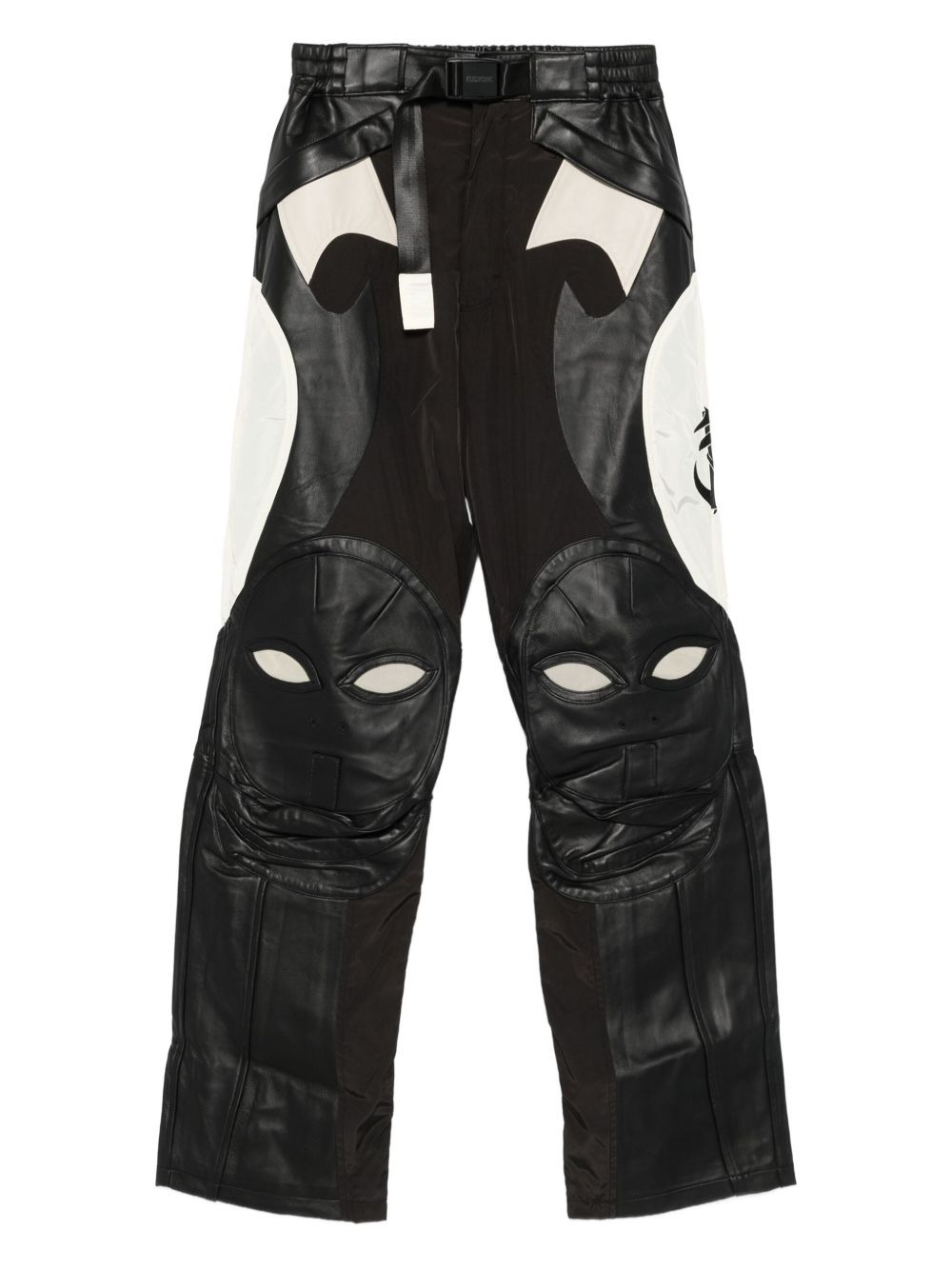 Rider leather panelled trousers Highlights - Black - Lambskin leather - Off-white panels - Elasticated waistband - Belted waist Imported Composition Lamb Skin 100%, Polyester 100% Washing instructions Specialist Cleaning