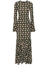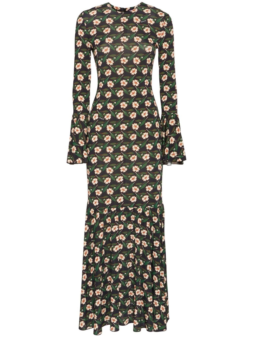 Alba dress Highlights - Black/multicolour - Jersey texture - Concealed rear zip fastening - All-over floral print - Crew neck - Long sleeves - Flared cuffs - Pleated skirt - Ankle-length Made in Italy Composition Viscose 92%, Elastane 8%