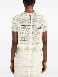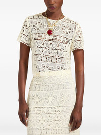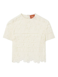 Aria lace-embroidered cropped top Highlights - Pale yellow - Scalloped hem - Back keyhole opening - Short sleeves - Floral pattern Made in Italy Composition Polyester 100%