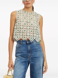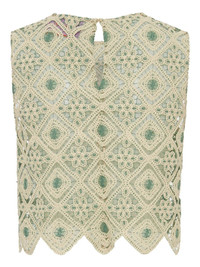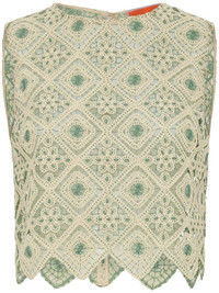 Aria macrame cropped blouse Highlights - Cream white/aqua green - Macrame detailing - Geometric-pattern print - Round neck - Rear button fastening - Scallop hem - Cropped Made in Italy Composition Polyester 100% Washing instructions Read Manufacturer Guidelines