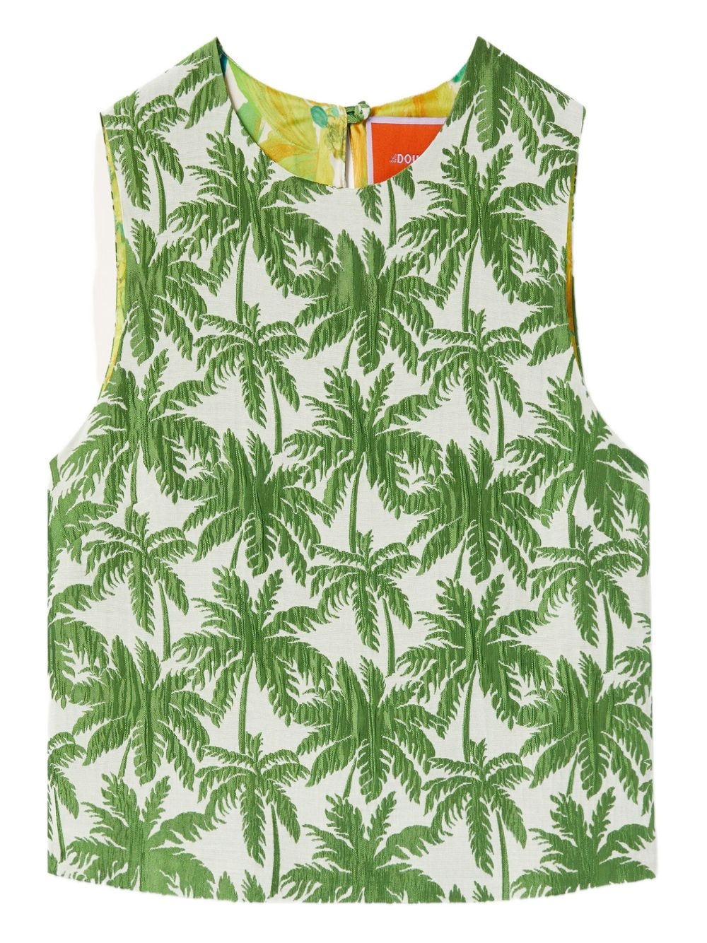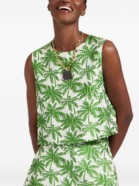 Aria palm-print cropped top Highlights - Green - Palm leaf pattern - Sleeveless design - Round neckline - Zip fastening at the back Made in Italy Composition Acetate 44%, Viscose 33%, Polyester 22%, Elastane 1%