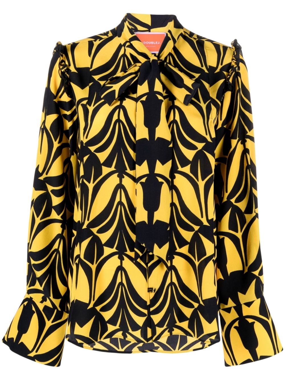Ascot floral-pattern silk shirt Combining high-quality materials with bold motifs, La DoubleJ presents this Ascot shirt. It's cut in Italy purely from silk and decorated with a floral motif in bright yellow and black hues. Highlights - Yellow/black - Silk - All-over floral print - Scarf detailing - Ruffled trim - Long sleeves - Curved hem Made in Italy Composition Silk 100% SIZE & FIT Model measurements Height 5 ft 10 in(1.77 m) Bust/Chest 31.1 in(79 cm) Hips 35.03 in(89 cm) Waist 23.62 in(60 cm) FittingInformation Designed for a relaxed fit, this piece allows for comfort and movement when worn Made from a midweight non-stretch fabric This piece fits true to size – take your usual size Washing instructions Dry Clean Only