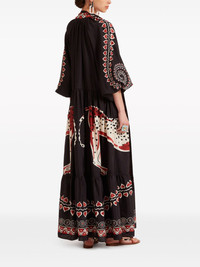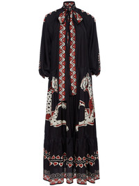 Athena animal-print silk dress Highlights - Black/multicolour - Silk - Voile - Animal print - Geometric print - V-neck - Front tie fastening - Three-quarter length draped sleeves - Elasticated cuffs - Tiered skirt - Floor-length - Straight hem Made in Italy Composition Silk 100%