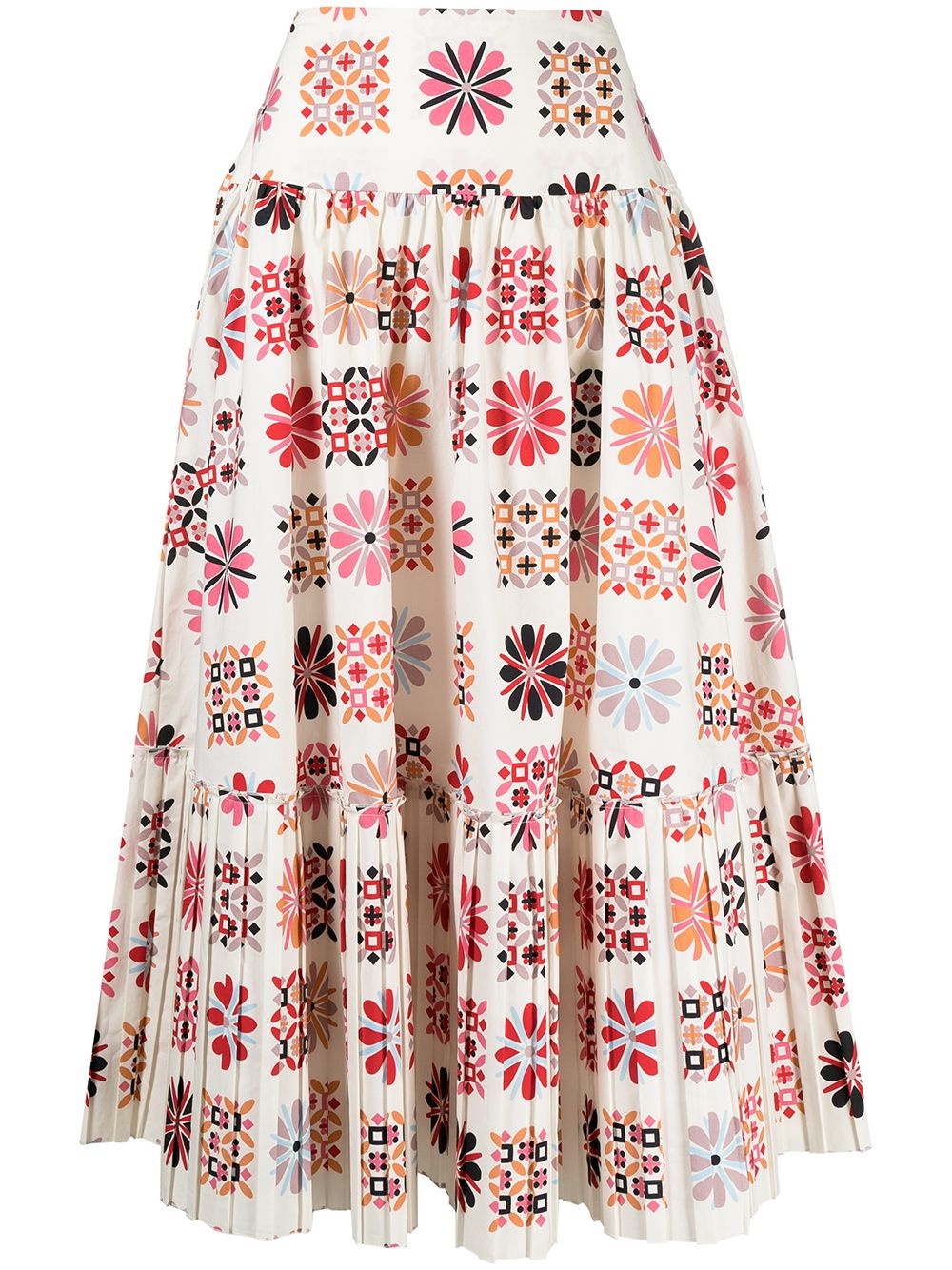 Balletto midi a-line skirt ivory-white/multicolour cotton all-over floral print gathered detailing pleat detailing rear zip fastening two side inset pockets a-line mid-length Made in Italy Composition Cotton 100% SIZE & FIT Model measurements Height 5 ft 11 in(1.8 m) Bust/Chest 33.07 in(84 cm) Hips 37.4 in(95 cm) Waist 25.19 in(64 cm)