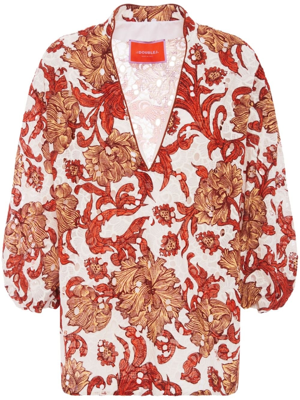 balloon-sleeves cotton tunic Highlights - Red - Cotton - V-neck - Full jacquard - Balloon sleeves - Elasticated cuffs - Straight hem - Rear curved hem Made in Italy Composition Cotton 100%