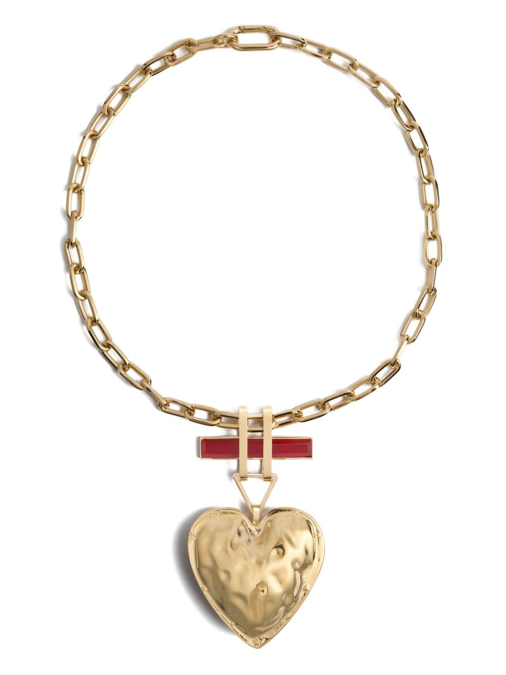 Beating chain necklace Highlights - Gold-tone - Hammered effect - Heart pendant - Carnelian bar detail - Geometric clasp - Normal everyday use and external agents may reduce the lustre of gemstones and gold surfaces. to maintain, use specific, non-abrasive products specially meant for cleaning jewellery. Made in Italy