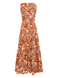 Big botanical-print poplin dress Highlights - Beige/orange/red - Cotton - Poplin texture - Botanical print - V-neck - Concealed rear zip fastening - Sleeveless - Tiered skirt - Calf-length - Straight hem Made in Italy Composition Cotton 100%