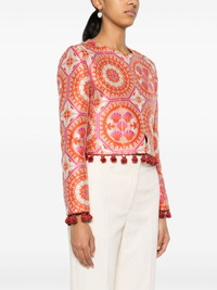 Bijoux cloque jacket Highlights - Carrot orange/multicolour - Cloque effect - All-over graphic patterned jacquard - Round neck - Shoulder pads - Long sleeves - Two front patch pockets - Cropped - Straight hem - Contrasting tasselled edges - Contrast lining - Front hook and eye fastening Made in Italy Composition Outer: Polyester 72%, Cotton 21%, Silk 4%, Polyamide 3% Lining: Polyester 100% SIZE & FIT Model measurements Height 5 ft 9 in(1.76 m) Bust/Chest 31.1 in(79 cm) Hips 36.61 in(93 cm) Waist 24.8 in(63 cm) FittingInformation Designed for a boxy fit, intended for a loose fit throughout Made from a midweight non-stretch fabric This piece fits true to size – take your usual size