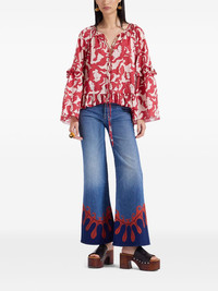 x Mother Boho blouse Highlights - Red - Abstract pattern print - Round neck - Long sleeves - Ruffle hem Made in Italy Composition Cotton 100%